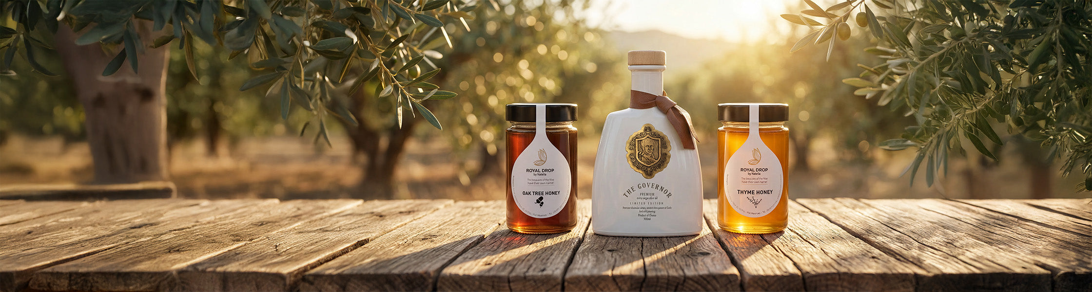 Notre huile « The Governor » provient d'anciennes oliveraies de Corfou et est récoltée à la main depuis des générations.